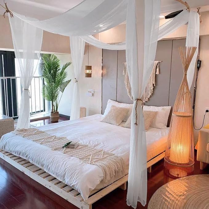 - Multiple Hanging Ways:Through adjusting the length of scarf flexibly with different hanging ways to achieve different look.Simply drape it across canopy rails for a simple style or tie on rod to add more ambiance and luxury to your rooms.