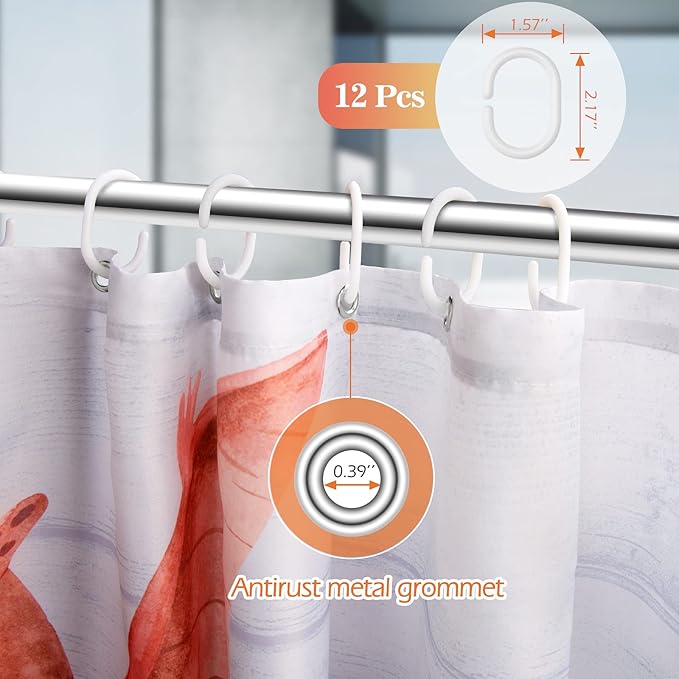 - Easy To Install: The shower curtain has grommets at the top to fit most standard shower hooks. Each Aimego bathroom curtain includes 12 PCS hooks. Using the top grommets and hooks, the bath curtain can be quickly hung on the rod and slide smoothly without jamming. Quick and easy removal when you want to clean or replace the shower curtains