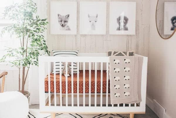 - Soft Muslin Sheets – Made with 100% Muslin Cotton, these sheets are soft to the touch and breathable, made to keep baby sleeping comfortably.