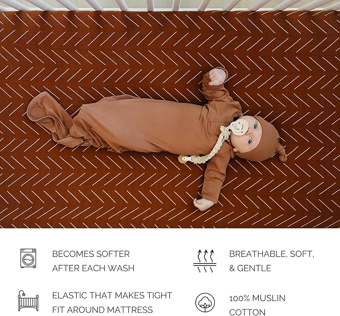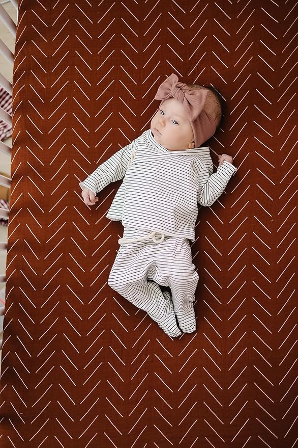 Rust Mudcloth Muslin Crib Sheet by Mebie Baby, Soft and Breathable Bed Sheets for Babies, Modern Neutral Bedding for Cribs, Standard Crib Mattress Fitted Sheet, Great for Boy or Girl Room or Nursery