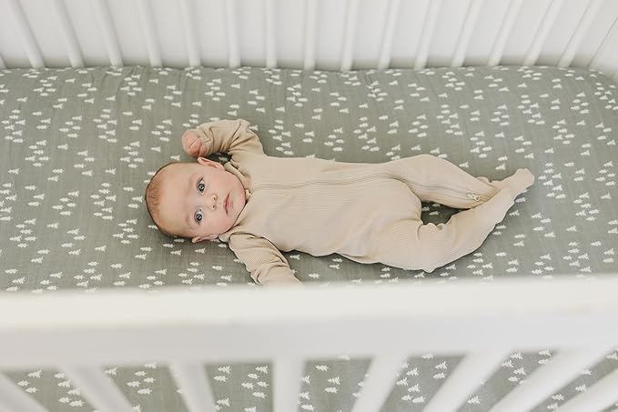 - Soft Muslin Sheets – Made with 100% Muslin Cotton, these sheets are soft to the touch and breathable, made to keep baby sleeping comfortably.