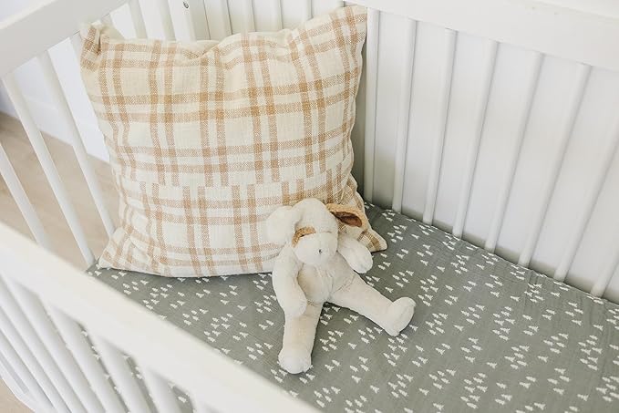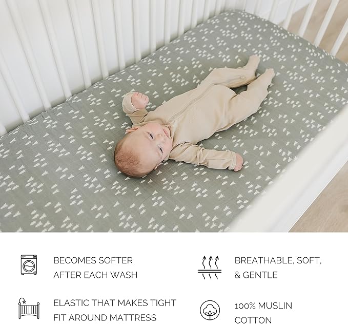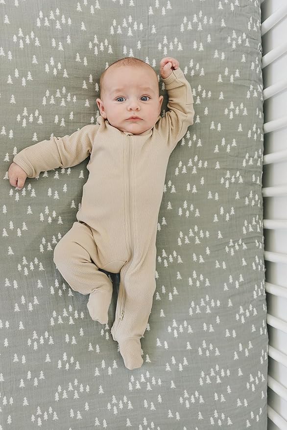 Pines Muslin Crib Sheet by Mebie Baby, Soft and Breathable Bed Sheets for Babies, Modern Neutral Bedding for Cribs, Standard Crib Mattress Fitted Sheet, Great for Boy or Girl Room or Nursery