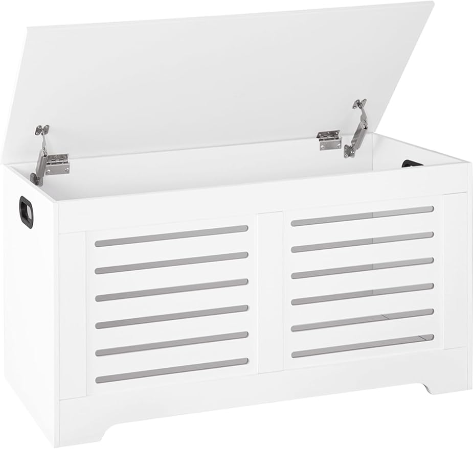 DINZI LVJ Storage Chest, Flip-Top Wooden Toy Box with 2 Safety Hinges, Retro Entryway Shoe Storage Bench, Sturdy Large Storage Trunk for Living Room, Bedroom, Easy Assembly, White