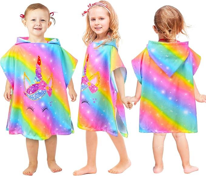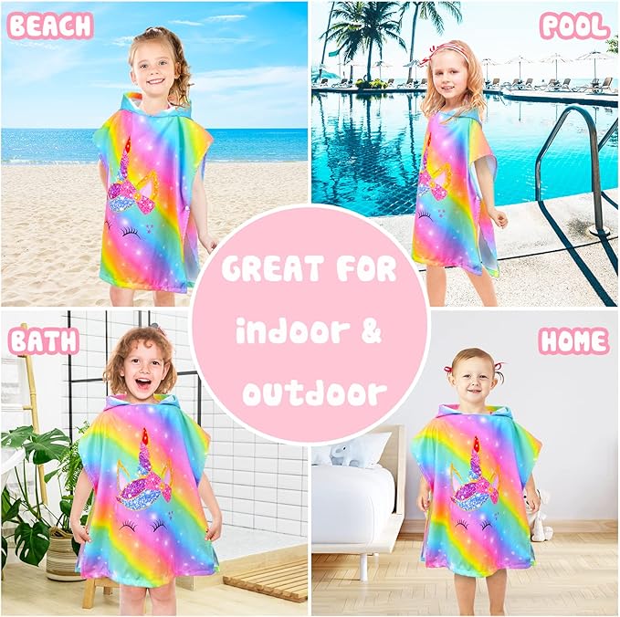 - 🧚♀️Wearable Design: Our beach poncho kids can be used as a cape, hoodie, bathrobe and towel. Let the child free his hands and never have to worry about the towel slipping off.