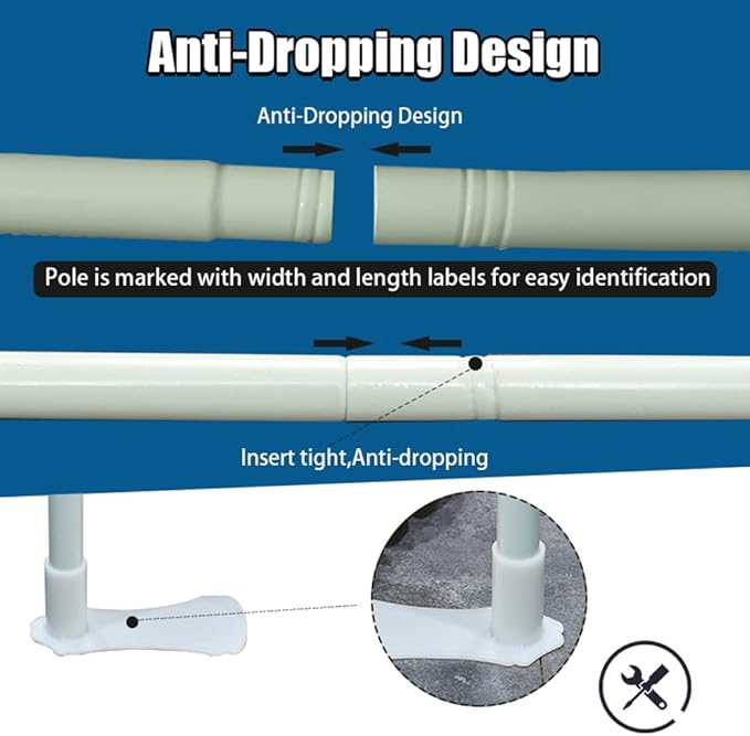 - Queen Size:59"WX 78"LX 78"H,16 rods of height, 8 rods of length and 6 rods of width. The frame is very easy to install, use a T-joint to connect the height pole, length pole and width pole, then place the stand feet under the foot of the bed.