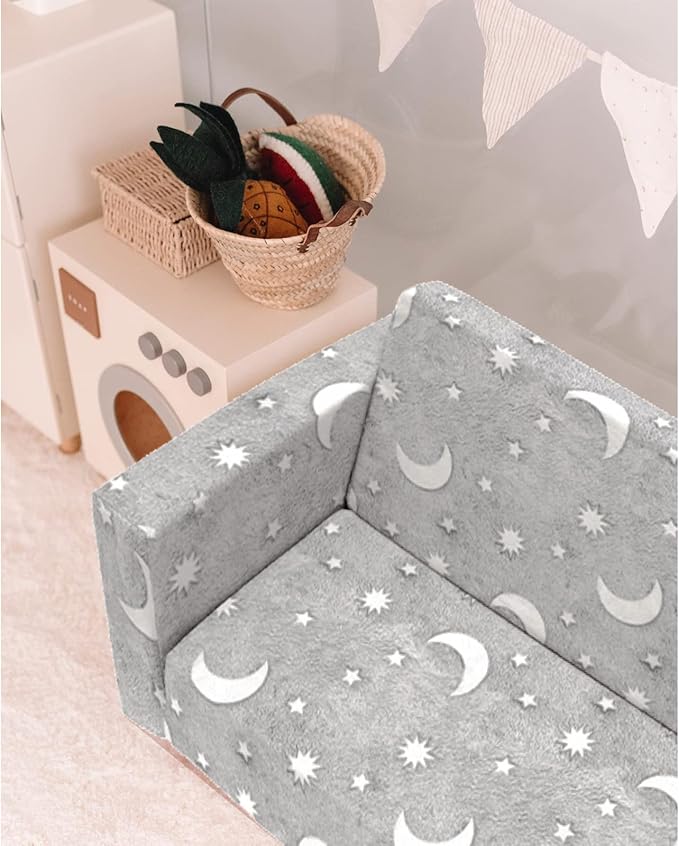 - Glow In The Dark Kids Sofa: Truwelby Kids Couch is not just a sofa, but also a fold-out sofa bed. Expose this toddler couch to bright light during the day, then turn off the lights at night to experience the magic! The glow light creates a dreamy atmosphere, making it feel like you're floating in the universe surrounded by stars. It's an incredible and comfortable experience!