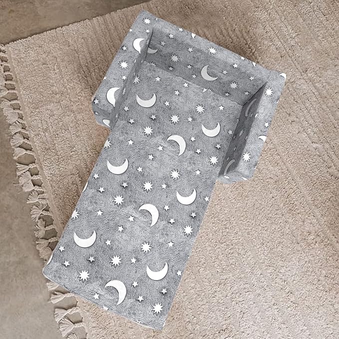 - Quality & Safety Assurance: Kid Sofa's size at 23"W x 17"D x 15"H, the Lounger Flipped Open is size at: 23"W x 41"D x 10"H. The cover of our kids sofa is crafted from premium plush polyester, providing a luxurious and soft feel that ensures comfort during use. With durable foam pads, this fold out sofa offers comfortable seating for both kids and toddlers. Plus, our toddler sofa's soft foam core prioritizes safety, making it an ideal choice for little ones.