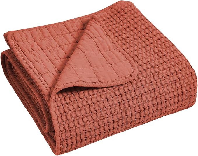 - Timeless Waffle Texture. This bedspread twin size features a classic waffle weave on the front for a tactile, textural look, backed with a smooth coordinating cotton fabric. Designed to bring tactile dimension and understated elegance to your space—ideal for contemporary, coastal, or minimalist bedrooms.