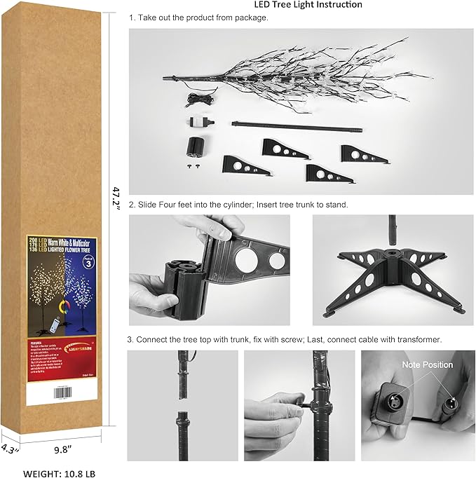 - 【Easy to Assemble and Store】: This cherry blossom tree is lightweight but sturdy and with a K-D structure for easy assembly and storage, the tree light includes a base and 2 trunks, which can be assembled and disassembled within 1min without any tools, perfect for home decor or taking out