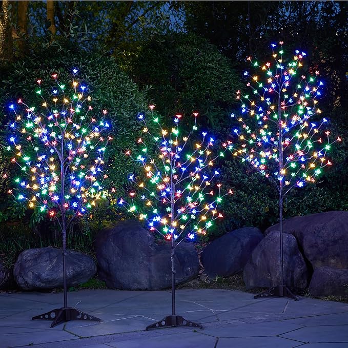 Lightshare Lighted Cherry Blossom Tree, 4FT, 5FT and 6FT, Pack of 3, Warm White to Multicolor, Decorate Home Garden, Summer, Wedding, Birthday, Christmas Holiday, Party, for Indoor and Outdoor Use