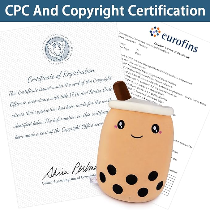 - Safe for Children. Suitable for 3+ yrs. The boba tea plushie doesn’t have any removable accessories or items that can be swallowed. There is NO Zipper to Avoid kids open the plush pillow and eat the filler!