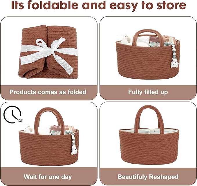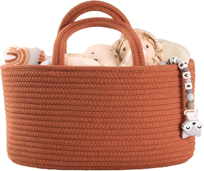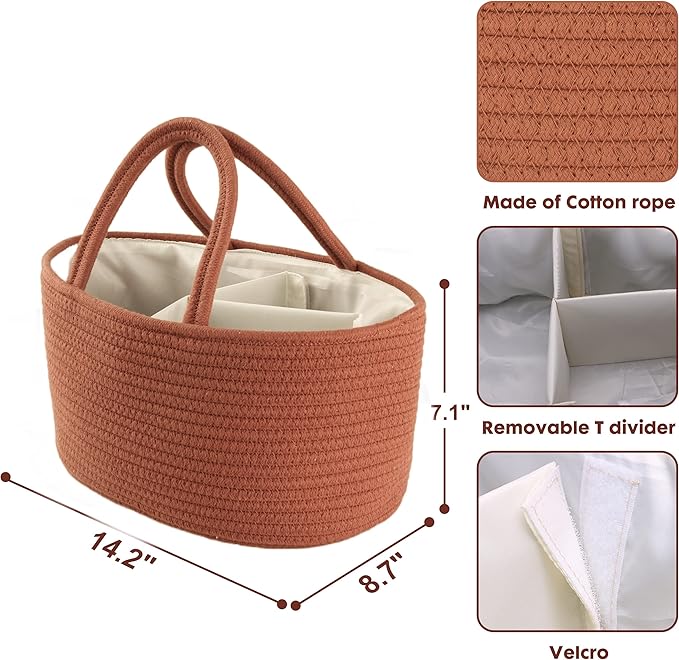 Baby Diaper Caddy Organizer for Girl Boy Cotton Rope Nursery Storage Bin Basket Portable Holder Tote Bag for Changing Table Car Travel Baby Shower Gifts Newborn Essentials Registry Must Have Rust