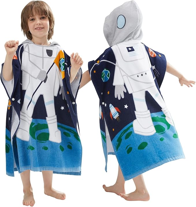 Kids Hooded Towel Bath Beach Soft Cotton Towels Boys Absorbent Pool Wrap with Hood Baby Toddler Poncho Robe(Astronaut,5-9Years/Height:43"-51")