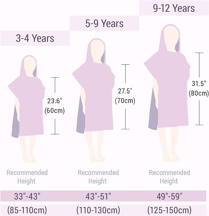 - Magical Changeable Towel Poncho: it can be used as a changing towel, wearable bath towel, a bathrobe even a blanket.There are three sizes for kids of all ages, it's also a great gift for girls and boya in New Year,Birthday,Christmas,Halloween,and other festivals