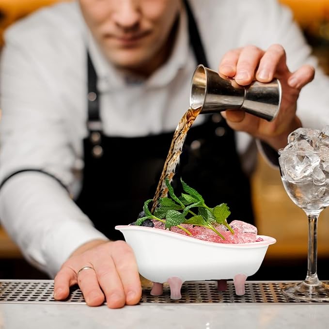 Ceramic Bathtub Bowl Cocktail Cup: Novelty Bathtub Wine Glasses Cocktail Sorbet Smoothie Cold Drink Cup Container for Home Bar Party Pink