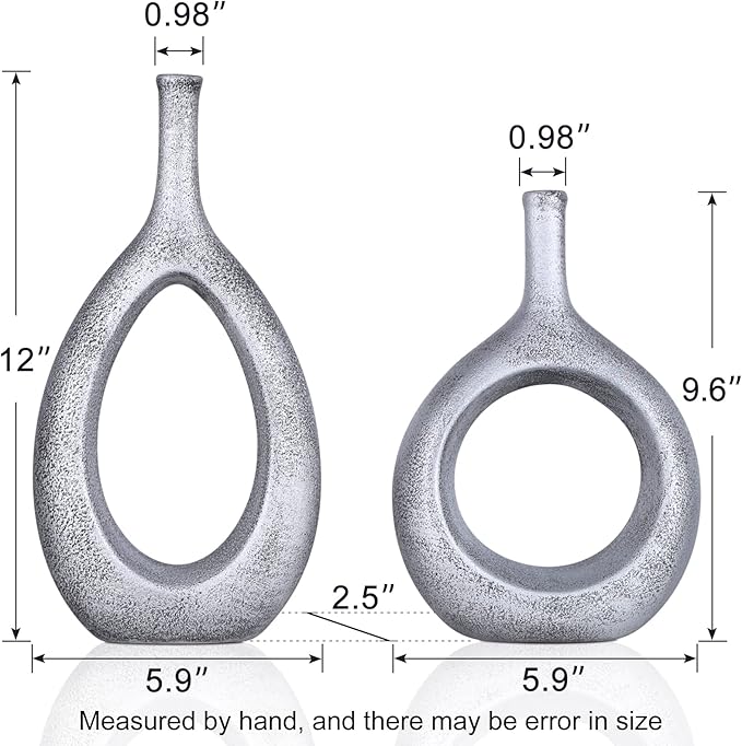 Vintage Silver Ceramic Vase Set 2,Modern Hollow Circle with Hole Flower Vase for Home Decor,for Table Centerpieces,Farmhouse,Fire Place,Living Room,Bedroom,Office,Bookshelf,Rustic Decor