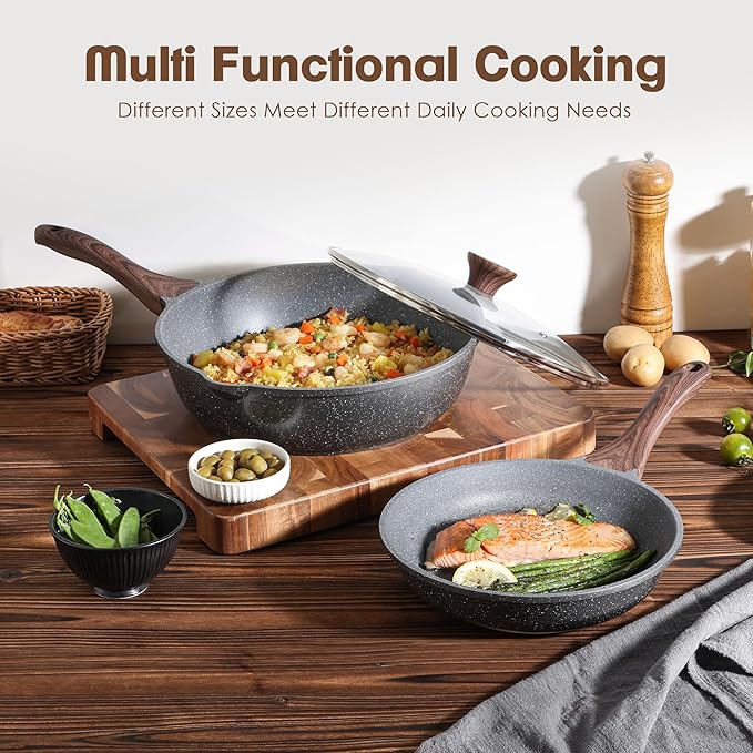 SENSARTE Nonstick Frying Pan Skillets, Swiss Granite Coating Omelette Pans, Healthy Cookware, Free of Intentionally Added PFOA (9.5 Inch Frying Pan and 5QT Saute Pan)