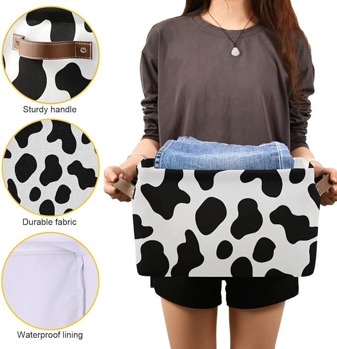 Cow Spots Storage Basket Fabric Storage Bin Laundry Baskets Farm House Country Style Foldable Storage Boxes Organizer Bag for Baby Cloth Dog Toy Book Storage Cubes Shelf Closet Basket 16×12×8 Inches