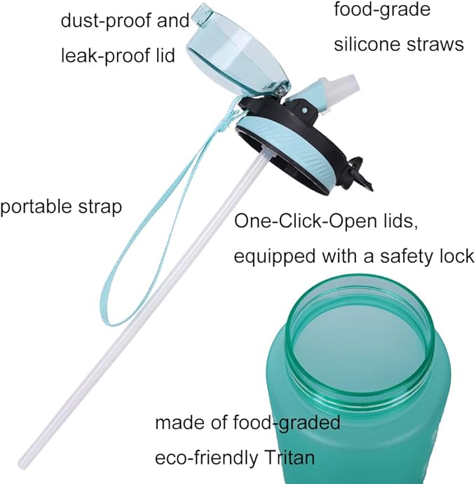 - 2.【Time Markers And Motivational Quote】The water bottle have encouraging words and time stamps on one side, and ounces & ml measurement on the other side. Can help you achieve health And fitness goals.