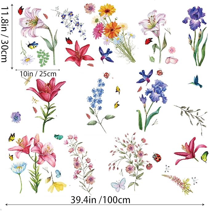 - --Our flowers vinyl stickers are so pretty and are very easy to use. They are the perfect addition to the garden themed bedroom. The unfolded size can decorate a wall of 100*100cm / 39.4 x 39.4inch