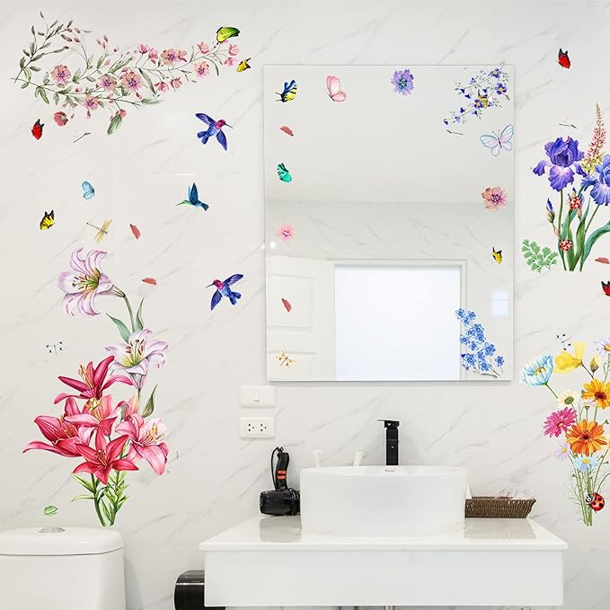 - --High Quality and Durable Material: Made of high quality eco-friendly PVC material, non-toxic and safe to use. Flower wall stickers are eco-friendly and easy to clean without disturbing your decor. Waterproof materials are better for decorating anywhere in your home. Especially kitchen and bathroom decoration