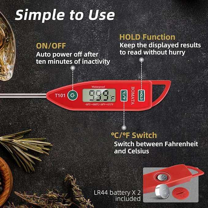 BOMATA Waterproof IPX7 Thermometer for Water, Liquid, Candle and Cooking. Instant Read Food Thermometer with Long Probe for Cooking, Meat, BBQ! T101 (Red Color)…