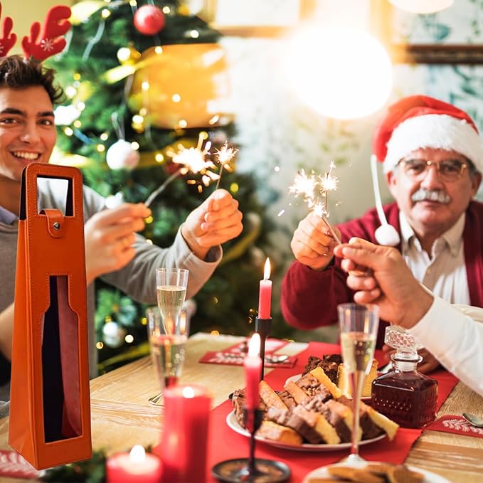 - ✅【Size】: 7.6*3.7*12.8 inch, accommodate 1 regular 750ml wine bottles.Our leather wine tote is great for one wine bottle. Designed with a metal buckle on the top of the bag, it will enhance the security of wine bottle from crashing.