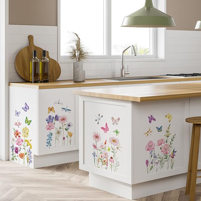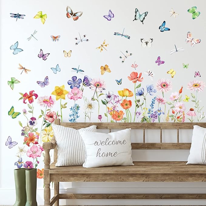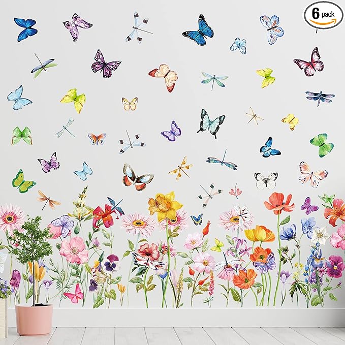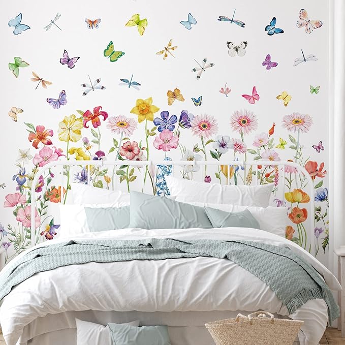 - Special design: the colorful garden bouquet wall sticker adopts watercolor painting style with multiples and pastel colors, looking gentle, romantic and exquisite, which combine the flower bouquets and butterflies to form a lively and dreamy scene in your room
