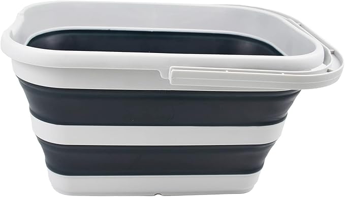 SAMMART 12L (3.1 gallon) Collapsible Rectangular Handy Bucket/Multiuse Foldable Water Pail for Camping, Fishing (Grey/Slate Grey)