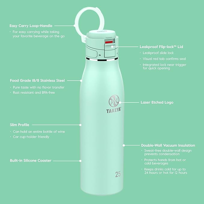 Takeya 25 oz Traveler Stainless Steel Insulated Travel Coffee Mug with Locking Leak Proof Lid, Premium Quality, BPA Free, Dodgeball Grey