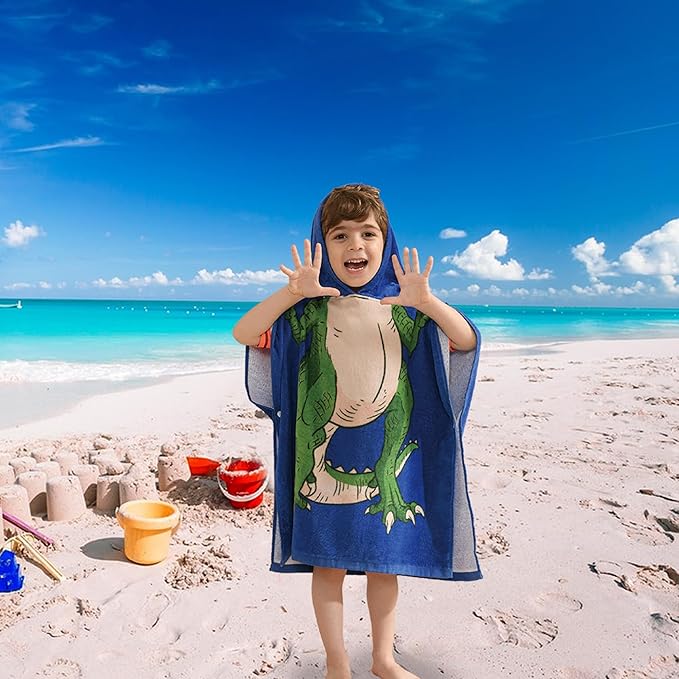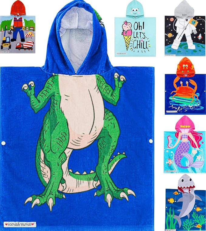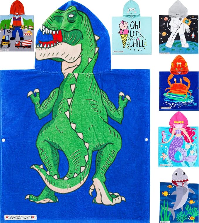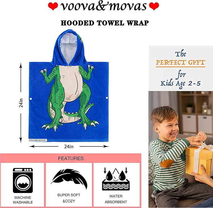 VOOVA & MOVAS Kids Poncho Towels with Hood (2-6Years), Soft Cotton Poncho for Boys Girls, Perfect for Child Swim | Camping Surf | Shower | Birthday Gifts, Dino/Dinosaur Theme