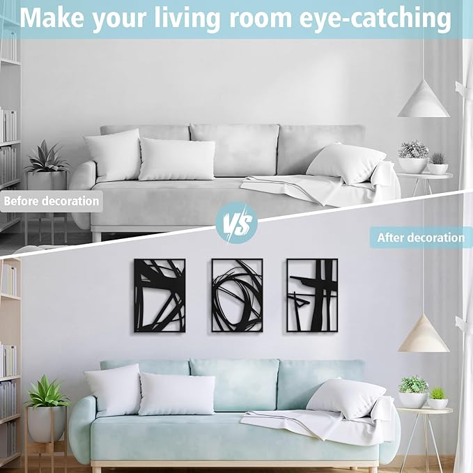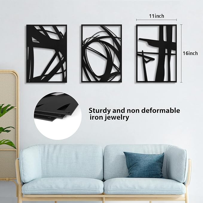 - QUALITY MATERIAL - Full real metal. These modern minimalist abstract line art decors are made of reliable metal, creating a quality metal texture, our black abstract wall art brings modern sophistication to your living room decor.