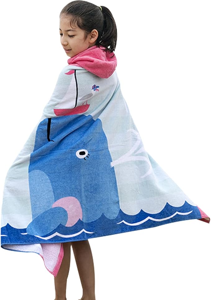 BANGSAUR Kids Hooded Pool Towels, Cotton Large Beach Bath Swiming Towel Wrap, Toddlers Girls 3-12 Years Cover Up Dolphin