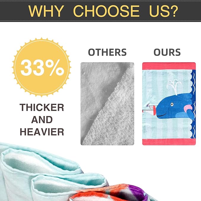 - 100% Quality Cotton: The beach hooded towels are perfect for your kids’ delicate skin! The hooded towels for kids are made of 100% soft cotton in premium 400-gram weight fabric, long-staple terry cotton inside and absorption woven of thick cotton velour outside,super soft, absorbs well, ultra-comfy and cozy, Oeko-Tex Certified, eco-friendly dyes and a UPF 50+, no harmful substance. Perfect bath towel, perfect love!