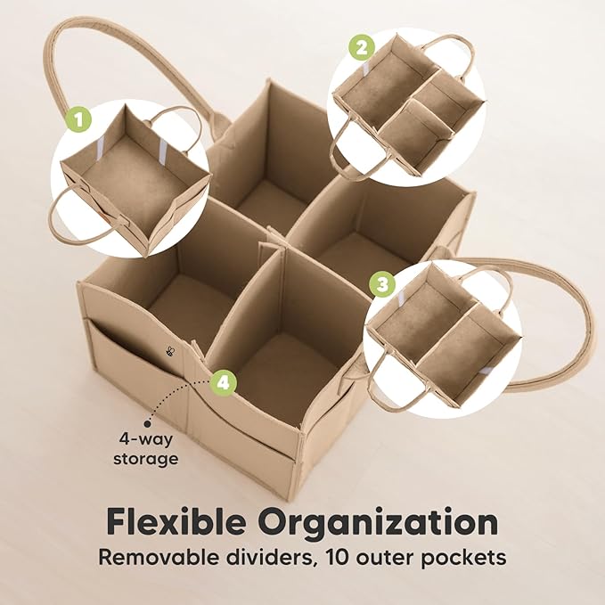 - Modular Design - Need compartments or a large storage space for your changing table organizer? No worries, you can choose to use it as a large diaper basket or utilize the detachable dividers for better organization of your baby essentials