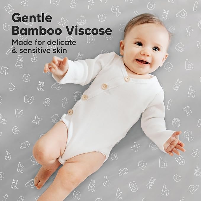 Pack and Play Sheets Fitted, 2-Pack Mini Crib Sheets - Pack N Play Sheets, Organic Fitted Crib Sheet for Pack and Play Mattress, Playard Baby Crib Sheets,Crib Sheets Neutral for Boys,Girls (ABC Land)