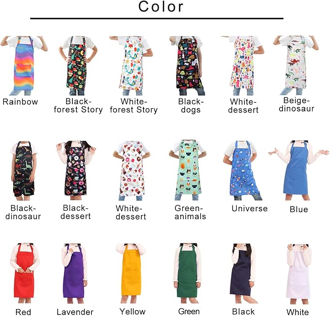 Kids Apron Chef Hat Set for Boys and Girls Adjustable Neck Strap Hook and Loop Fastener Design Waistband for Baking