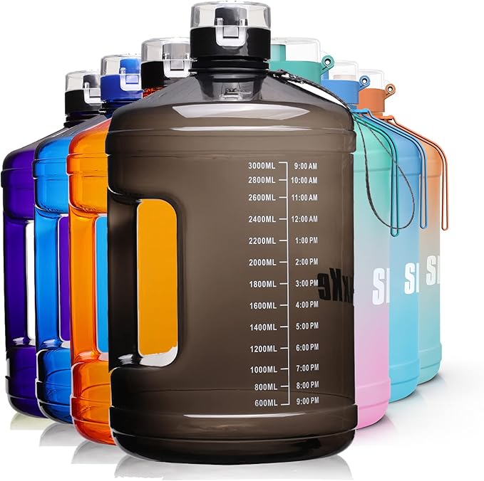 Gallon Big Water Bottle with Handle, 128oz Leakproof BPA Free Fitness Sports Water Bottle with Motivational Time Marker & Wide Mouth Ensure You Drink More Water