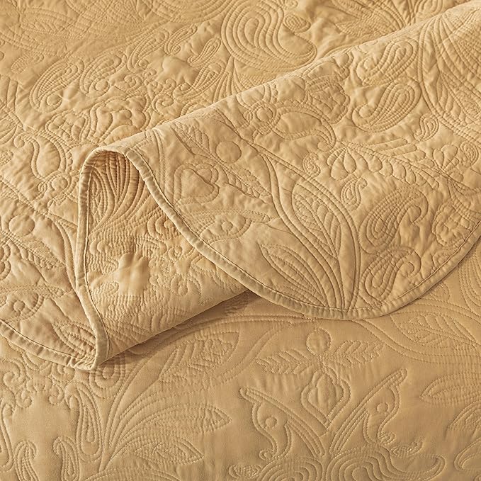 HoneiLife Embroidered Quilt King Size - 3 Pieces Microfiber Quilt Sets Lightweight Bedspreads Reversible Coverlets Retro Bed Cover Paisley Pattern Bedding Set All Season Quilts-Yellow