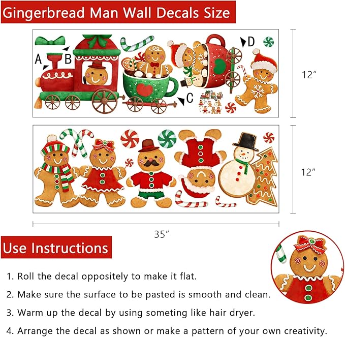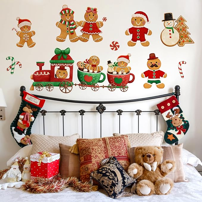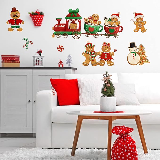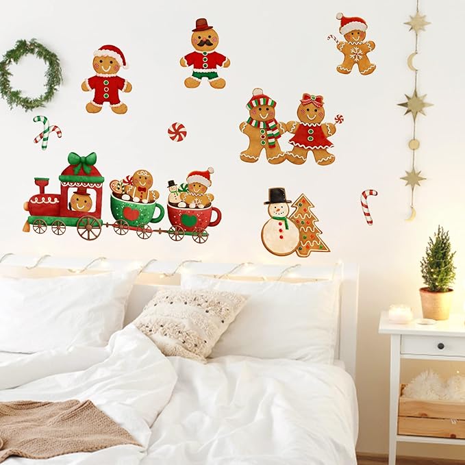 Yovkky Christmas Gingerbread Man Wall Decals Stickers, Xmas Snowman Santa Claus Winter Home Bedroom Decor, 2025 New Year Candy Cane Peppermint Cookie Kitchen Living Room Decorations Art Holiday Gift