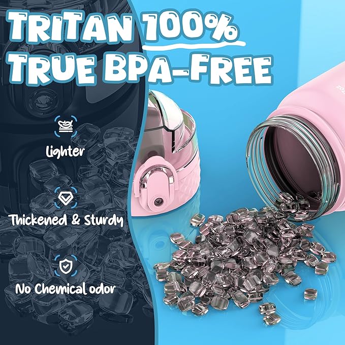 - 【Safe Spout】: The flip-up straw reveals a silicone safety spout, featuring a clever design with an anti-choking bite valve and a slow-flow opening, ensuring gentle water flow when your little one