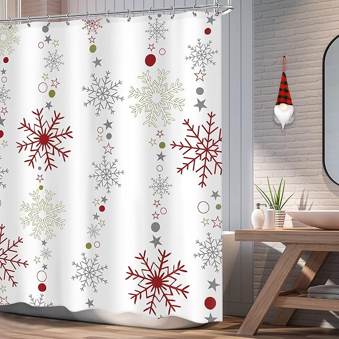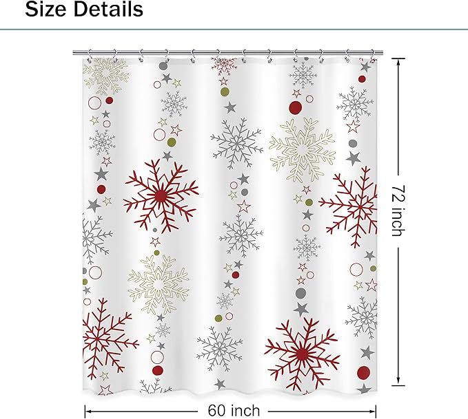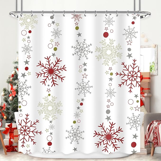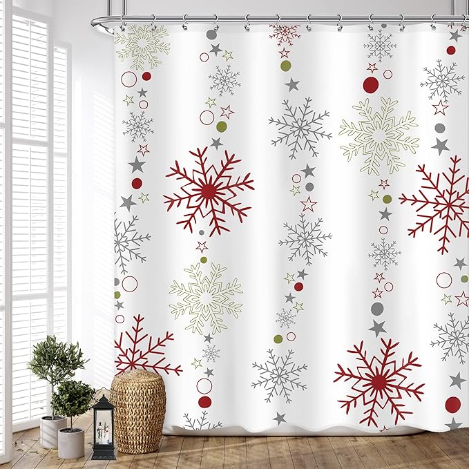 Christmas Shower Curtain 60Wx72L Inch Snowflake Winter Shower Curtain Bathroom Set Red Red Grey White Big Small Snowflakes Merry Xmas Holiday Kids Bath Curtain Bathtub Accessories Home Decor
