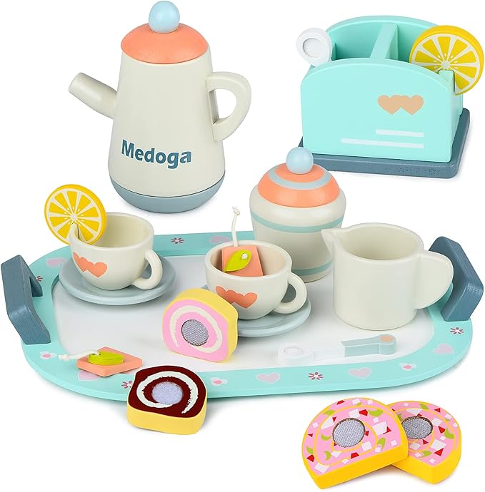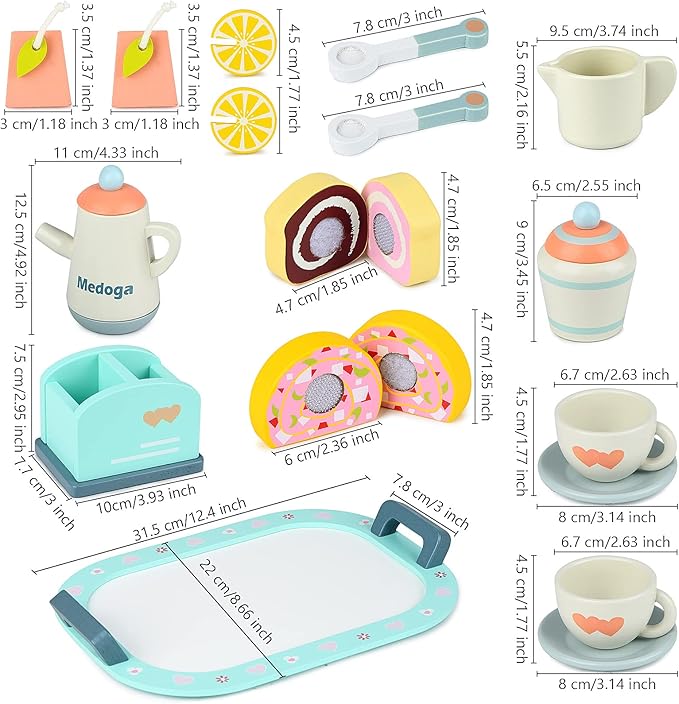 - NATURAL MATIRIAL - Natural wood, smooth and durable. Brightly colored and non-toxic water-based paint, pretend play tea set toy not only a toy but also a great decoration.