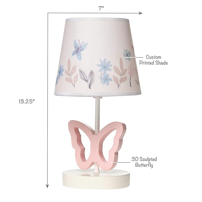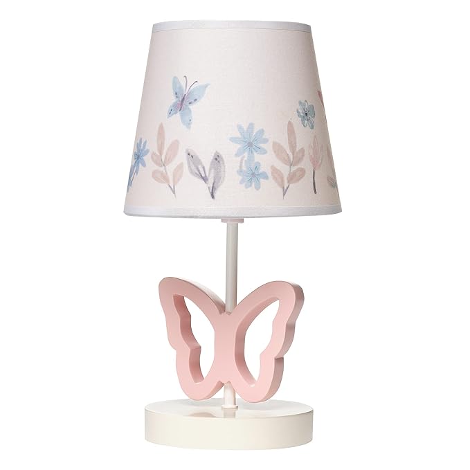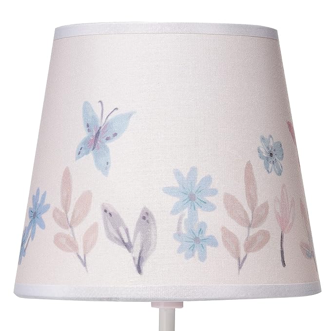 Lambs & Ivy Baby Blooms Pink Butterfly Nursery Lamp with Floral Shade & Bulb