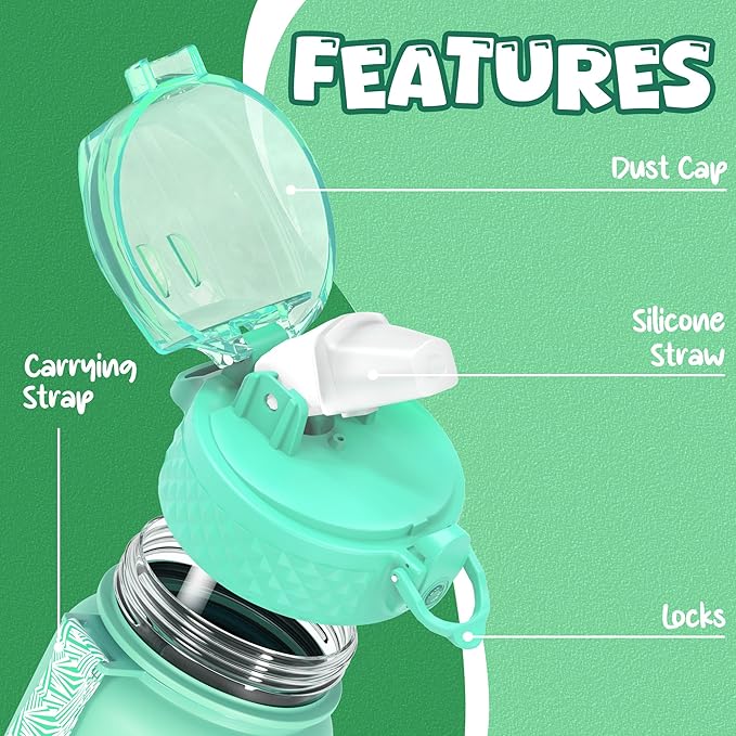 - Safe Design: Features a flip-up straw with a silicone bite valve and slow-flow opening for gentle hydration.