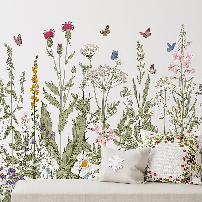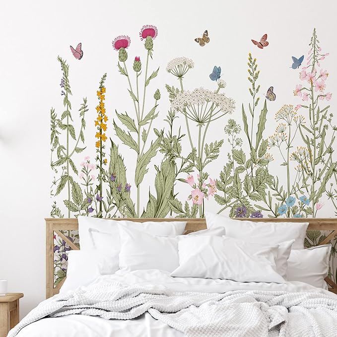- Special Design: the colorful garden bouquet wall sticker adopts watercolor painting style with multiples and pastel colors, looking gentle, romantic and exquisite, which combine the flower bouquets and butterflies to form a lively and dreamy scene in your room