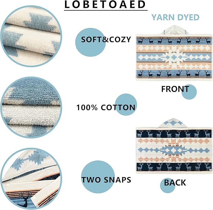 - 【MORE FRIENDLY DESIGN for KIDS】: Our baby bath & hooded towel has two snaps on the side to help you wrap your child up in comfort and playful style.This surf poncho is easy to put on and off, and will not slide down from body.The hood can helps dry your child's hair. We have many cute cartoon styles suitable for boys & girls like Dinosaur, Mermaid, Cat, Unicorn, Shark, Car, Narwhal...