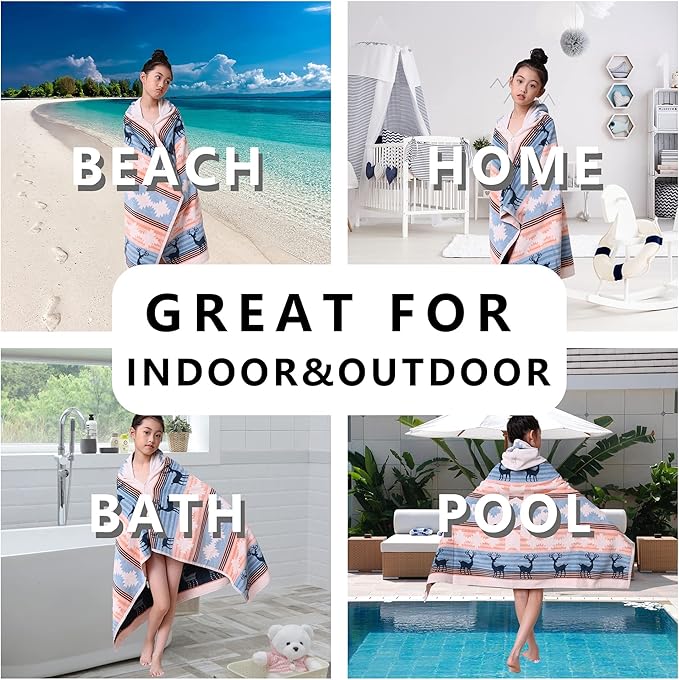 - 【MACHINE WASHABLE & NO FADE】: It can full cover up your child when they need to change clothes at beach or pool. Wearable bath towel is perfect for indoor and outdoor, bathroom, home, beach or pool accessory. Thanks to the excellent quality of the toddler towels, you can put it in the washing machine and dryer without worrying about the pattern fading