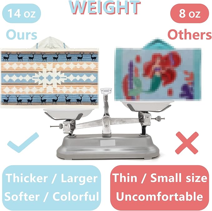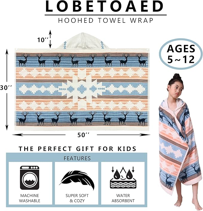 - 【OVERSIZE SIZE KIDS TOWEL】: A hooded towel bath wrap measuring 50" x 30" (127 x 76cm) with a 10" x 10"(25 x 25cm) hood.It comes in at 14 ounces(400 grams),it's pretty thick!Suitable for toddlers&kids from 5 to 12 years old.It is big enough to accompany your child's growth