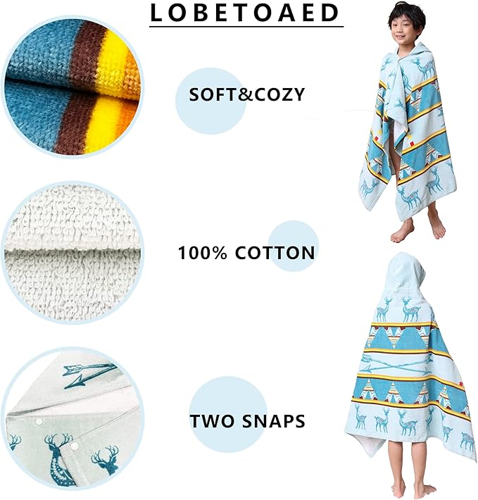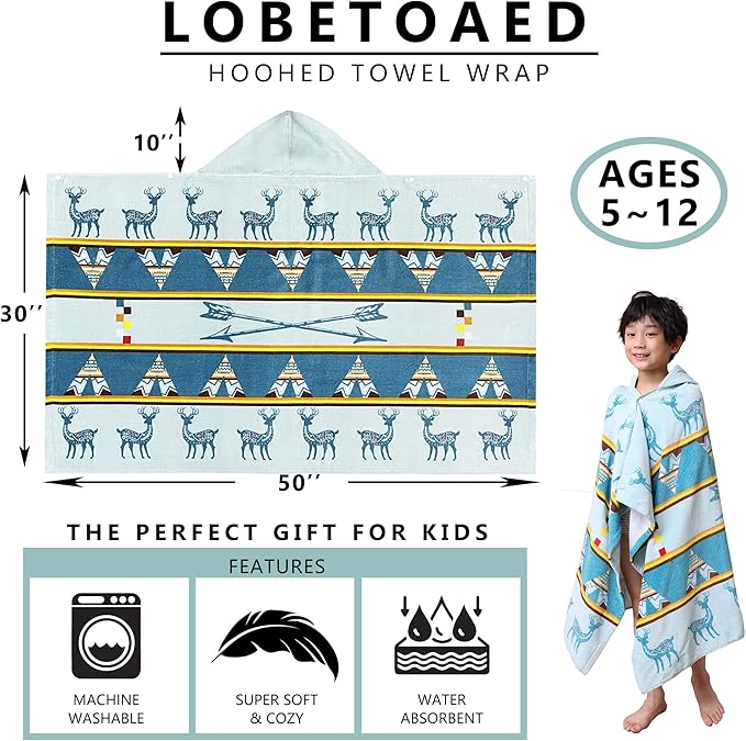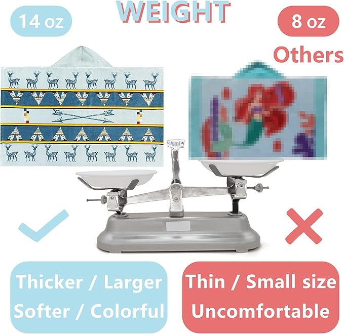 • 【OVERSIZE SIZE KIDS TOWEL】: A hooded towel bath wrap measuring 50" x 30" (127 x 76cm) with a 10" x 10"(25 x 25cm) hood.It comes in at 14 ounces(400 grams),it's pretty thick!Suitable for toddlers&kids from 5 to 12 years old.It is big enough to accompany your child's growth